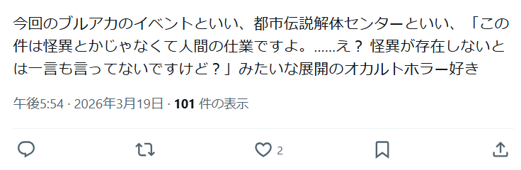 | … | 269無念Nameとしあき26/04/06(月)00:38:15No.1398910881そうだねx9>私もなんだかんだ言ってブルアカ自体は大好きなのかもね) |