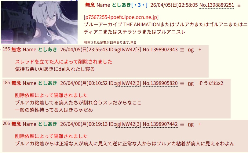 | … | 83無念Nameとしあき26/04/05(日)23:34:12No.1398898226そうだねx1 1775399652382.jpg-(325025 B) >ブルアニスレからは少なくとも2〜3人ぐらい新人が生まれてた気がする |