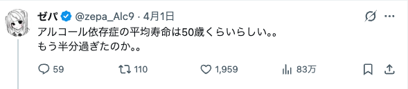 | … | 10無念Nameとしあき26/04/06(月)13:26:53No.1398978491そうだねx1今から酒漬けで50代まで何が半分だよ |