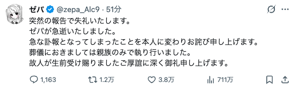 | … | 4無念Nameとしあき26/04/06(月)13:22:12No.1398977814そうだねx1急な訃報をお詫びって |