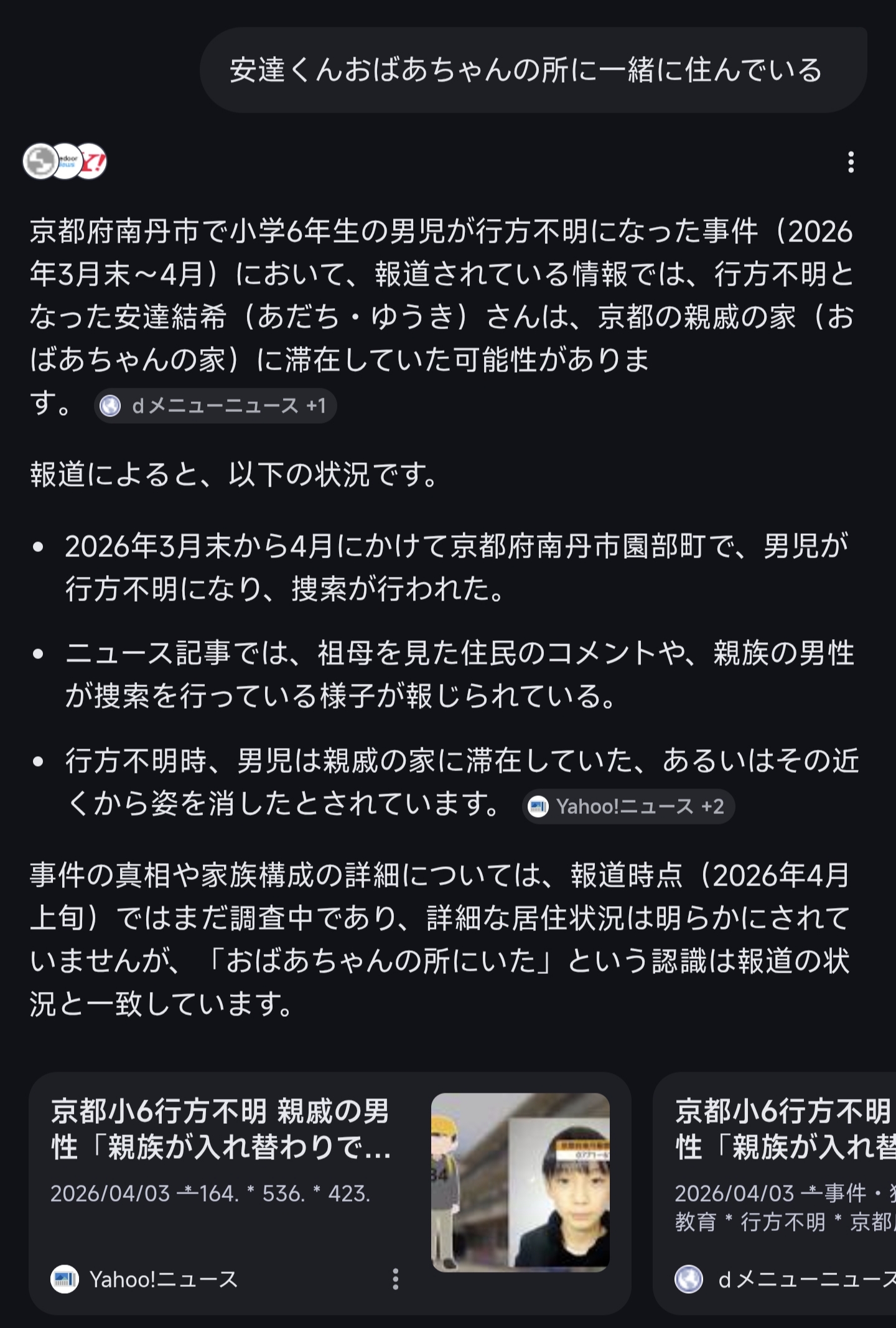 | … | 949無念Nameとしあき26/04/06(月)20:50:07No.1399060593そうだねx1そういえば結局新潟の女子中学生行方不明も続報なし? |