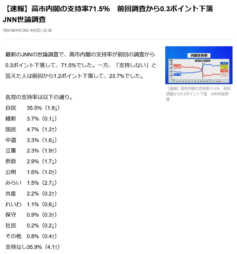 | … | 635無念Nameとしあき26/04/06(月)22:10:51No.1399082218そうだねx2マスコミが内閣にも国民にもスルーされてるのは自業自得 |