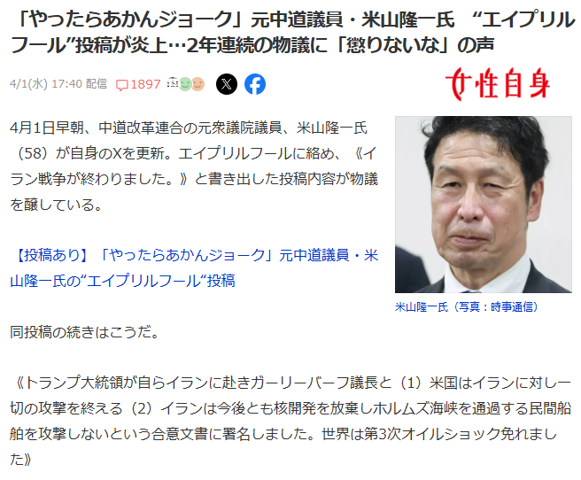 | … | 26無念Nameとしあき26/04/07(火)00:56:37No.1399118192+>「冗談なのは誰にでも分かるでしょ」ってノリなんだろうけど |