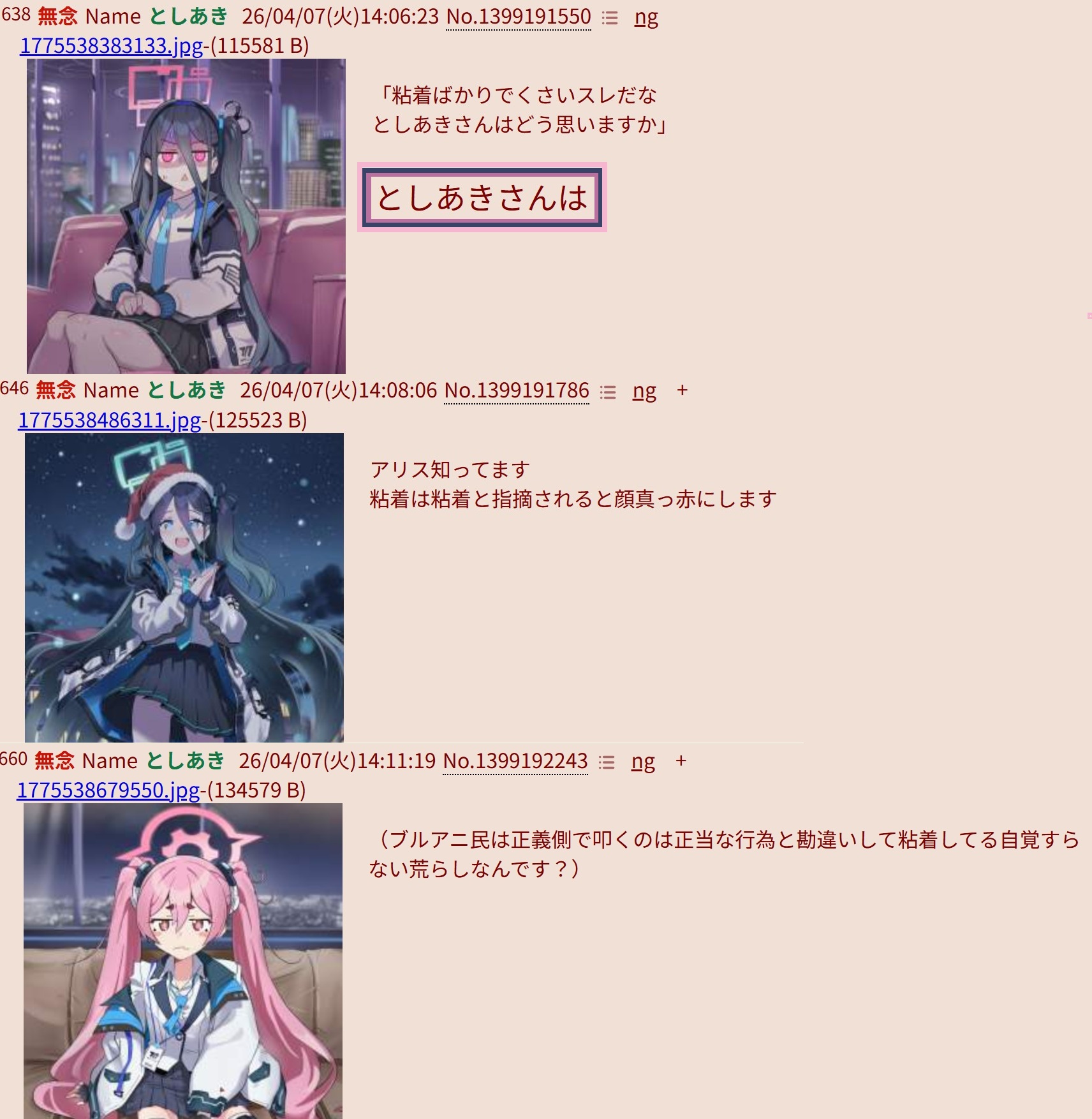 | … | 77無念Nameとしあき26/04/07(火)14:56:38No.1399198763+>せんせぇがふたばで1番のブルアカアンチまであるぞ |