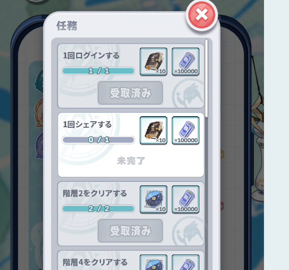 | … | 90無念Nameとしあき26/04/07(火)15:04:33No.1399199900そうだねx5 1775541873375.jpg-(51854 B) >(……階層20のクリアで全部貰えるみたい |
