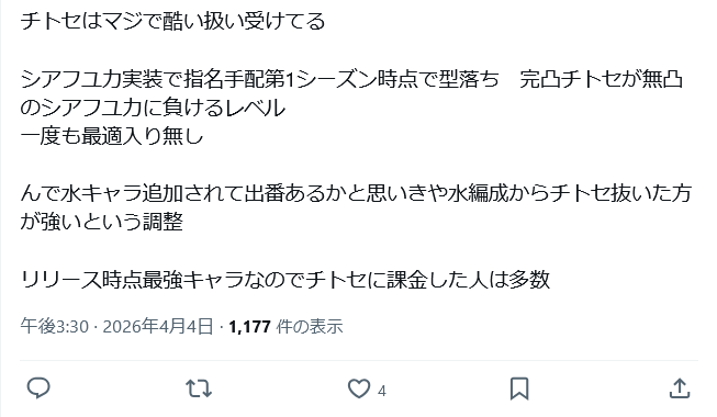 | … | 91無念Nameとしあき26/04/07(火)15:04:49No.1399199945+お前みたいなエアプ無能が課金しないからどんどん叩き棒が赤字になってんだよ |