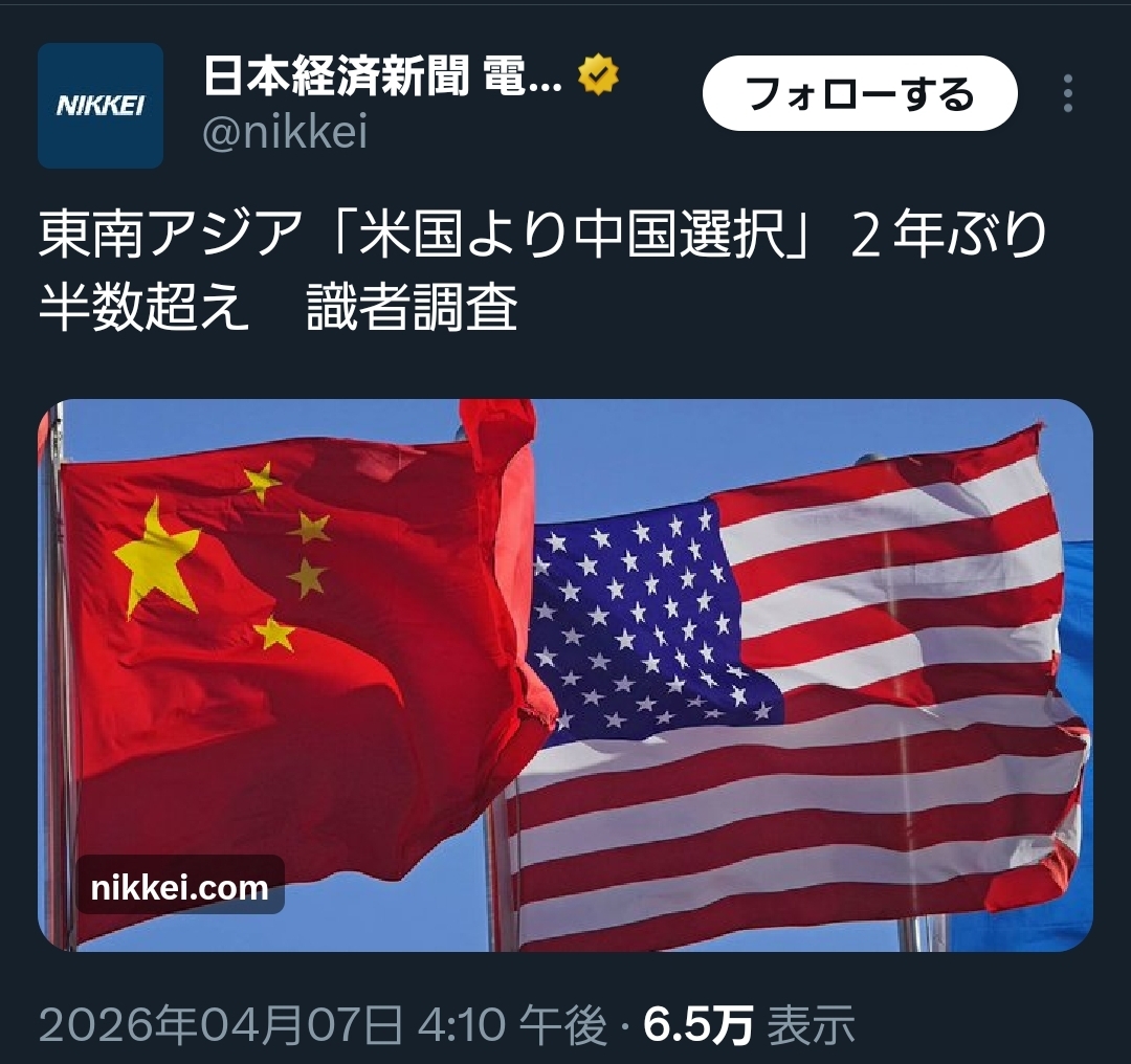 | … | 986無念Nameとしあき26/04/07(火)18:57:12No.1399239957+世界的にも今や米国より中国の方が信頼される国という |
