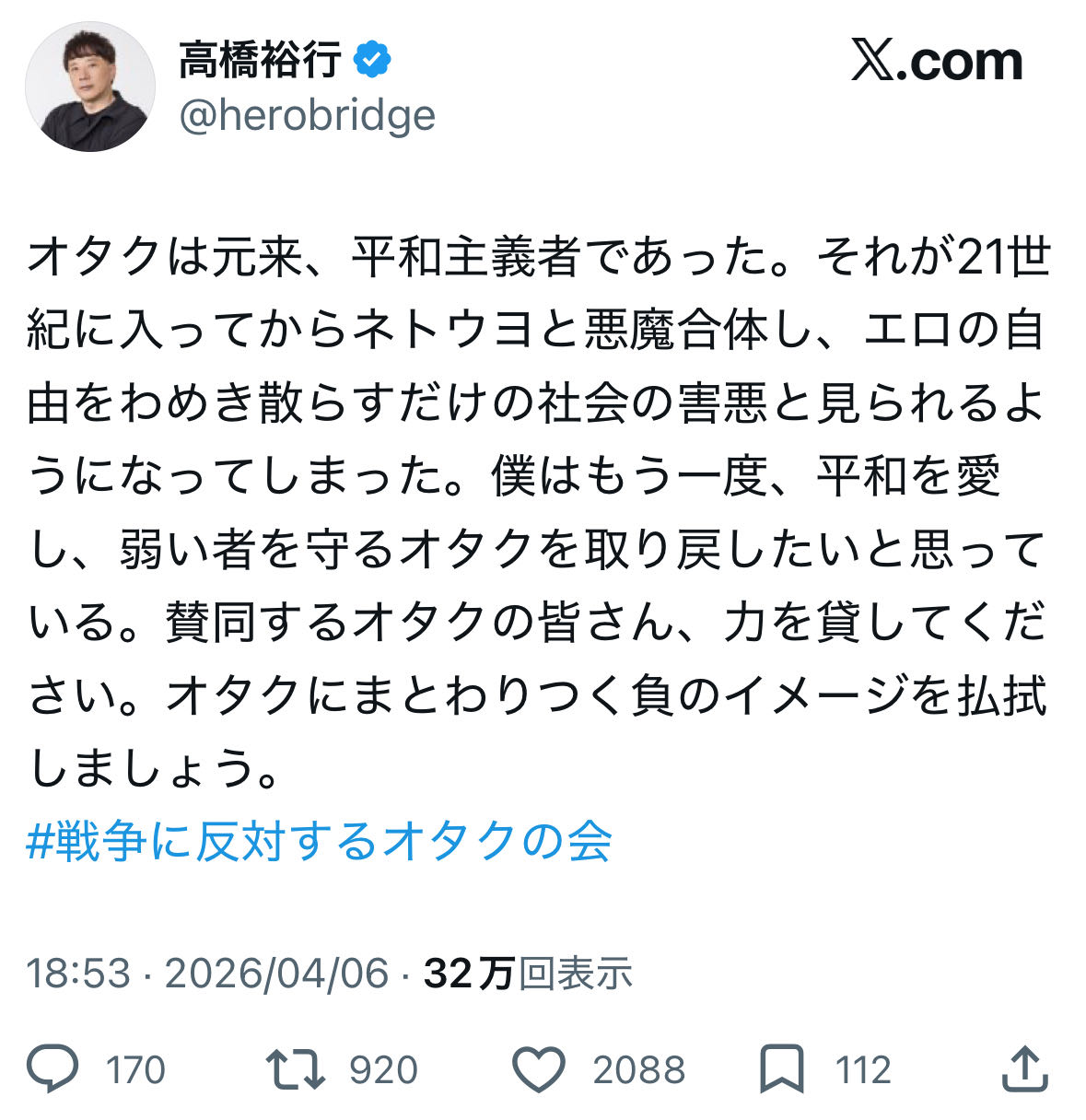 | … | 37無念Nameとしあき26/04/07(火)20:21:49No.1399263314そうだねx13>「戦争反対」と言ったら左翼だと言われるなら |