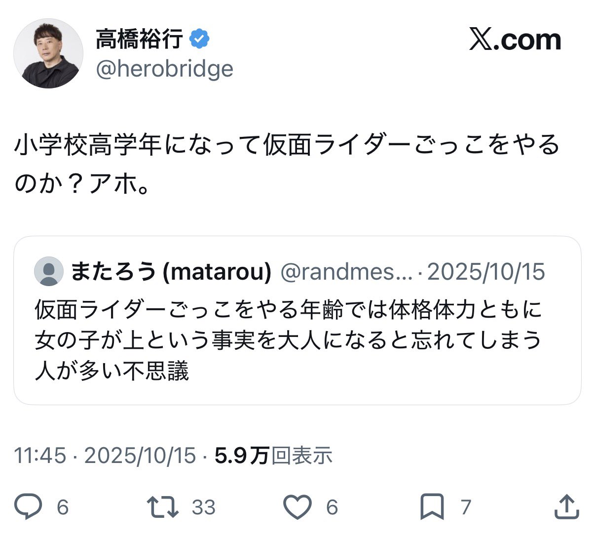 | … | 65無念Nameとしあき26/04/07(火)20:33:40No.1399266839そうだねx11 1775561620955.jpg-(42407 B) >>いい年して人前でやるライダーごっこ楽しかった? |