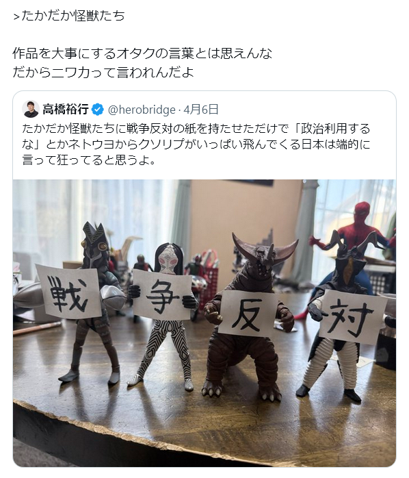 | … | 32無念Nameとしあき26/04/07(火)20:19:48No.1399262722そうだねx3>アニメや特撮使えばオタクを簡単にデモ動員できると思ってたんだろうなと |