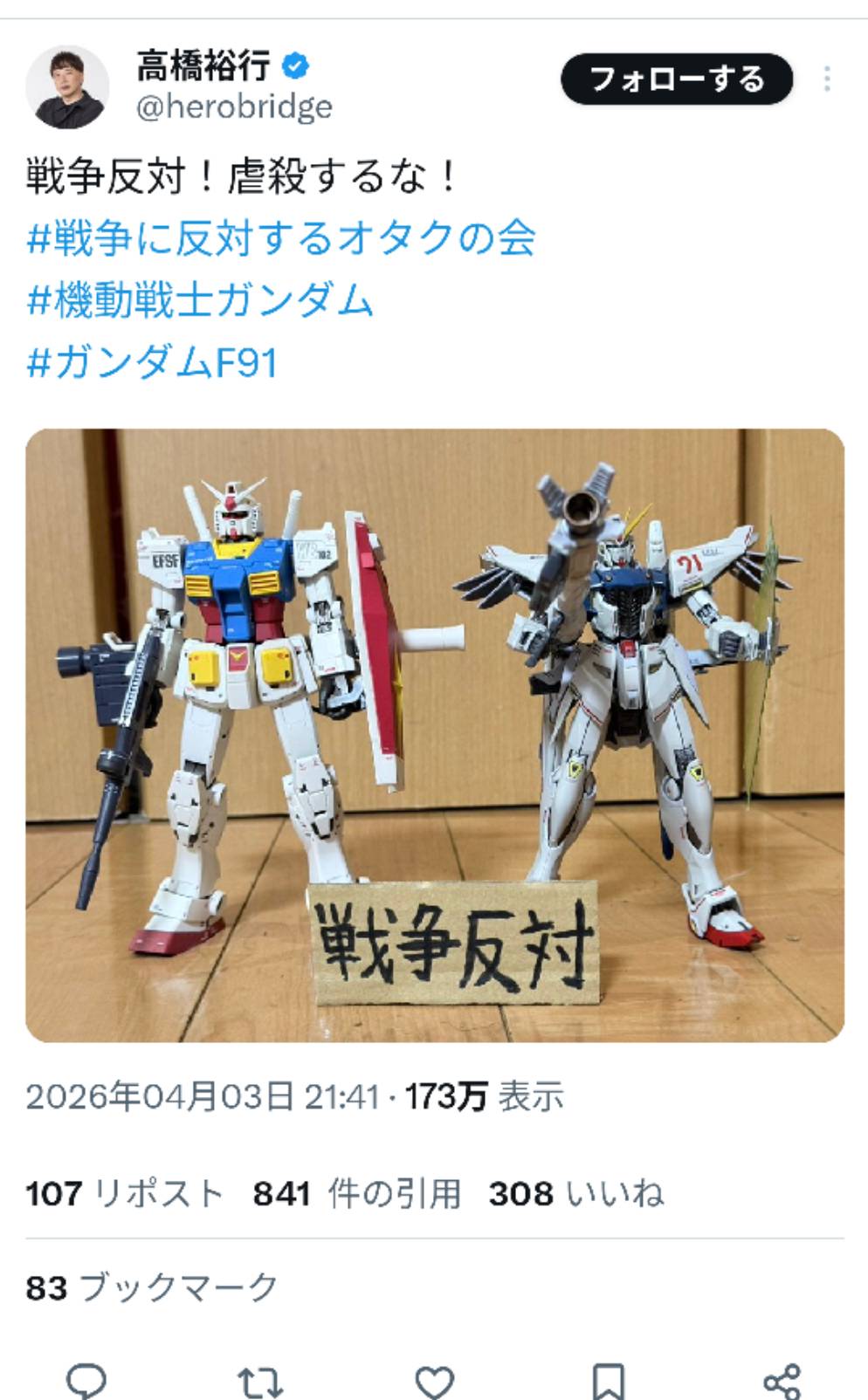 | … | 101無念Nameとしあき26/04/07(火)21:58:56No.1399290511+ガンダムなんて基本的には戦争を終わらせようとしてる奴らばっかりだからつまり反戦! |