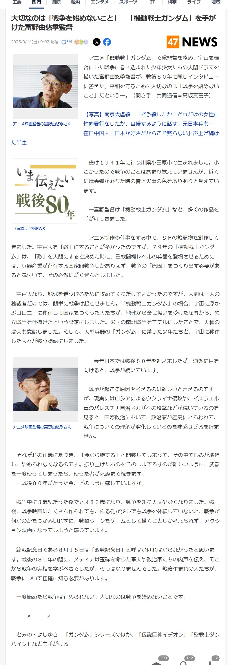 | … | 81無念Nameとしあき26/04/07(火)21:35:21No.1399284265+>いや富野と何十年付き合ってそれはそれで目が腐ってる |