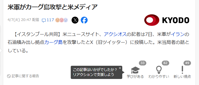 | … | 34無念Nameとしあき26/04/07(火)21:53:16No.1399289004そうだねx13イランの民を圧政から解放するって大義名分が完全に消し飛んだな… |