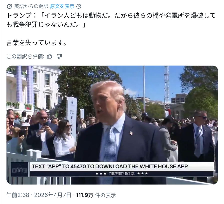 | … | 60無念Nameとしあき26/04/07(火)21:58:35No.1399290404そうだねx8マジで責任取ってこいつなんとかしろやアメリカ人 |