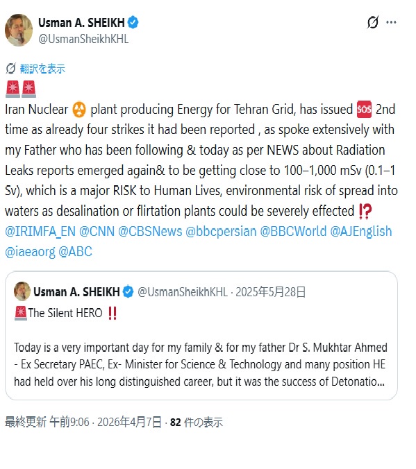 | … | 59無念Nameとしあき26/04/07(火)21:58:25No.1399290368そうだねx1>>イランは人間の鎖と称して原発・発電所を国民に周囲を囲むよ>うに呼び掛けてるそうな |