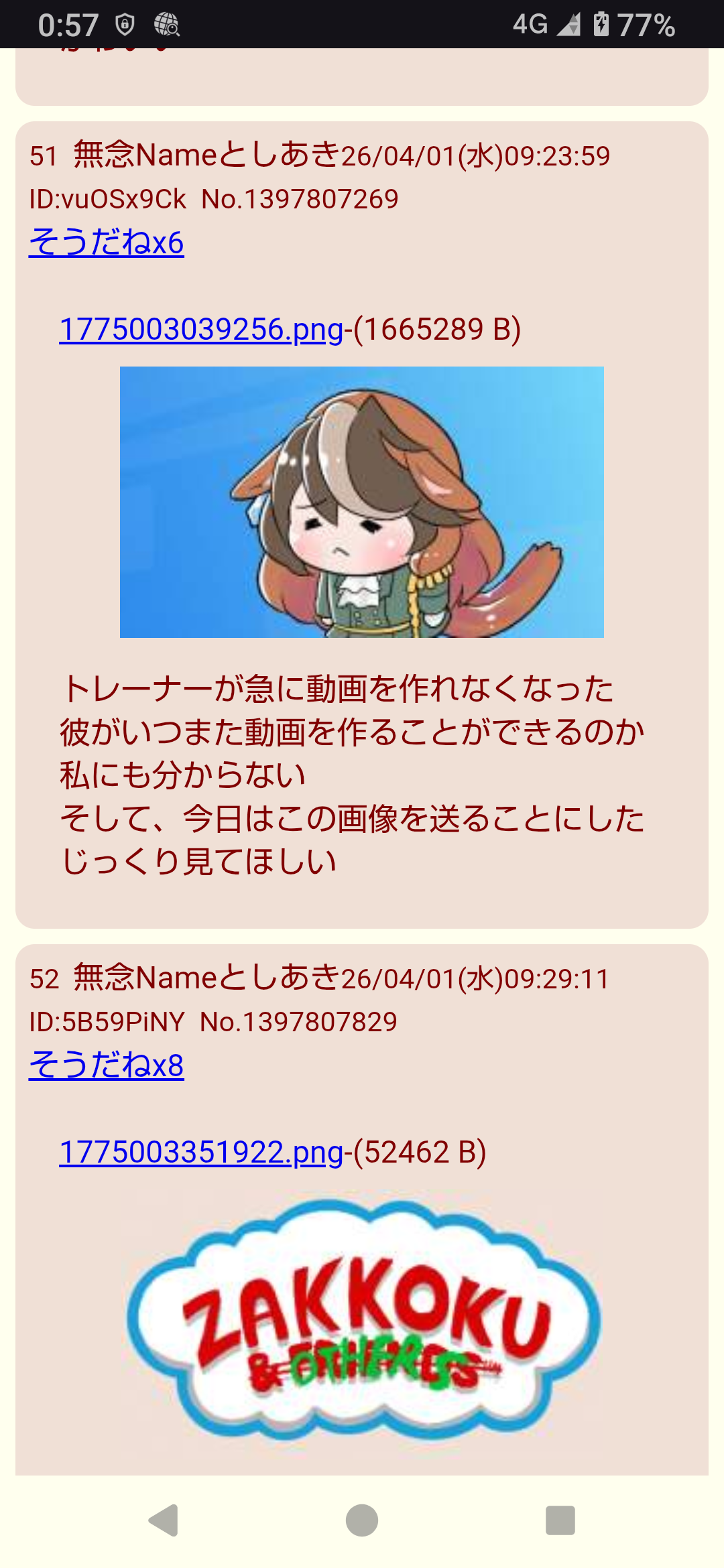 | … | 6無念Nameとしあき26/04/08(水)00:53:36 ID:4O/QzZRUNo.1399328770そうだねx5 1775577216837.mp4-(8158167 B) たておつ |