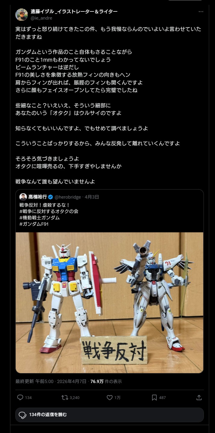 | … | 26無念Nameとしあき26/04/08(水)03:12:06No.1399341519+戦争反対の文脈でF91はなんかちょっとちがくないって感じはある |