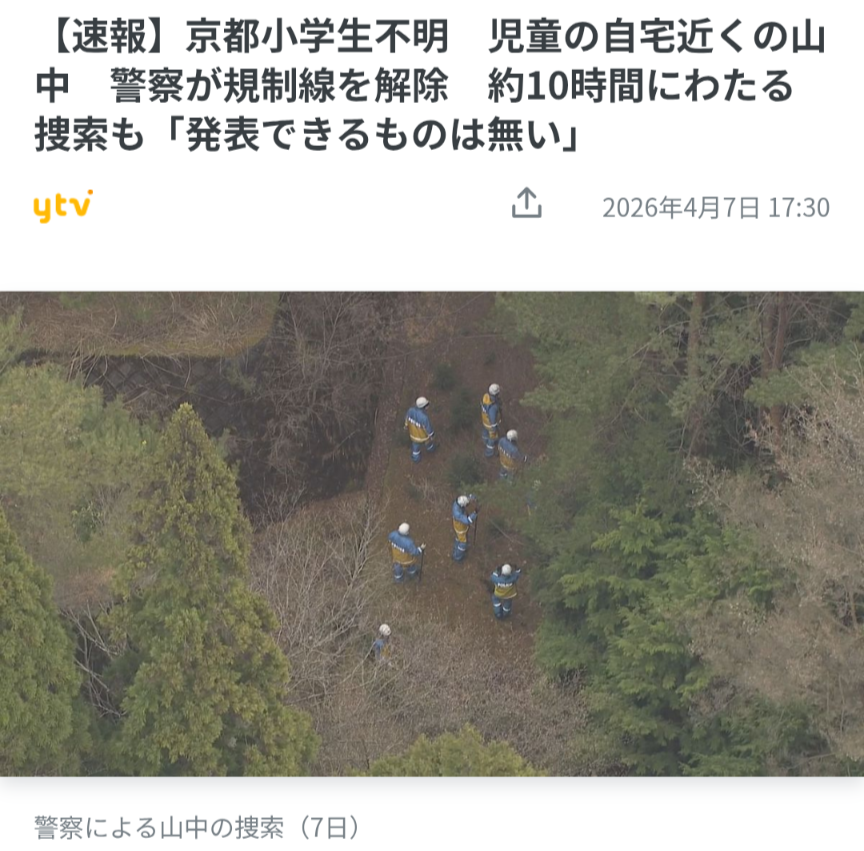 | … | 114無念Nameとしあき26/04/08(水)04:59:15No.1399344527+例えば昨日の捜索で体液の付着した男児用肌着が見つかったとしたら |