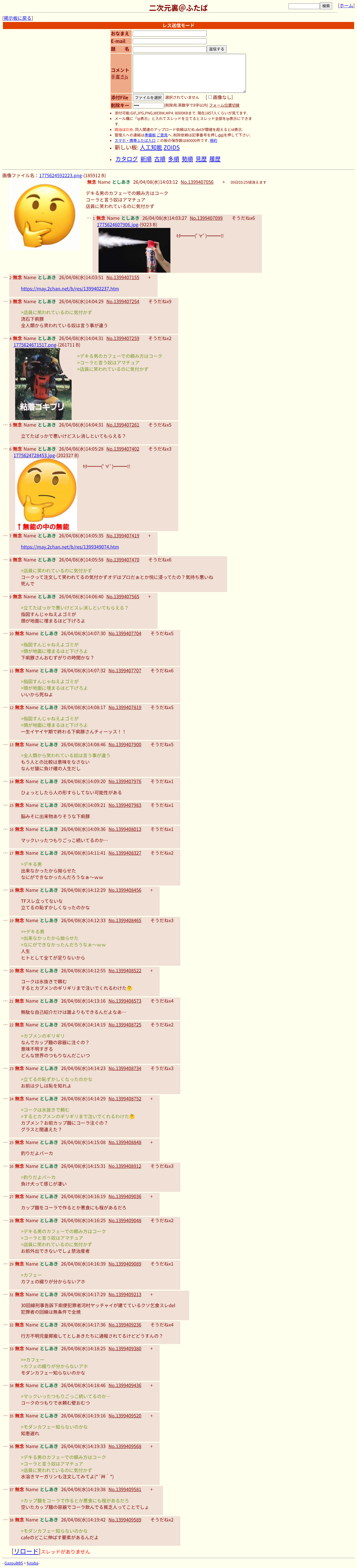 | … | 86無念Nameとしあき26/04/08(水)15:17:57No.1399418551そうだねx4 1775629077023.jpg-(747748 B) >TFスレがふたばを荒らしてるらしいな |