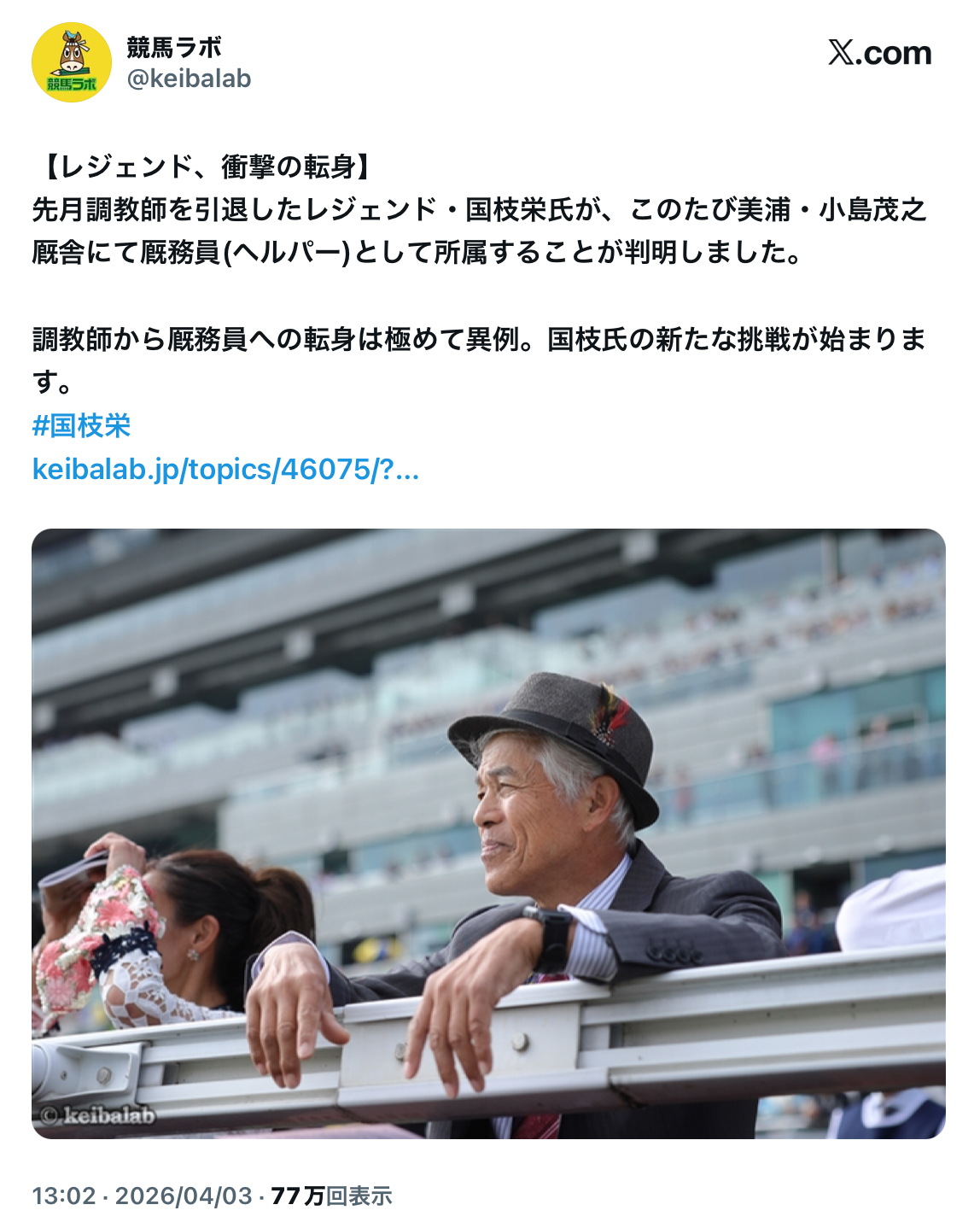 | … | 91無念Nameとしあき26/04/08(水)19:32:58No.1399466081そうだねx1 1775644378326.png-(168175 B) https://x.com/keibalab/status/2041699248367104483 |