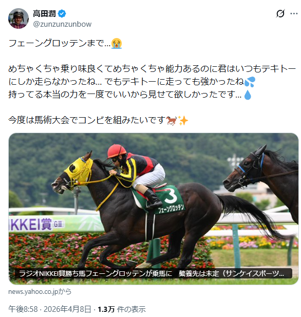 | … | 9無念Nameとしあき26/04/08(水)21:09:42No.1399494069+何者だい今日の勝ち馬は |
