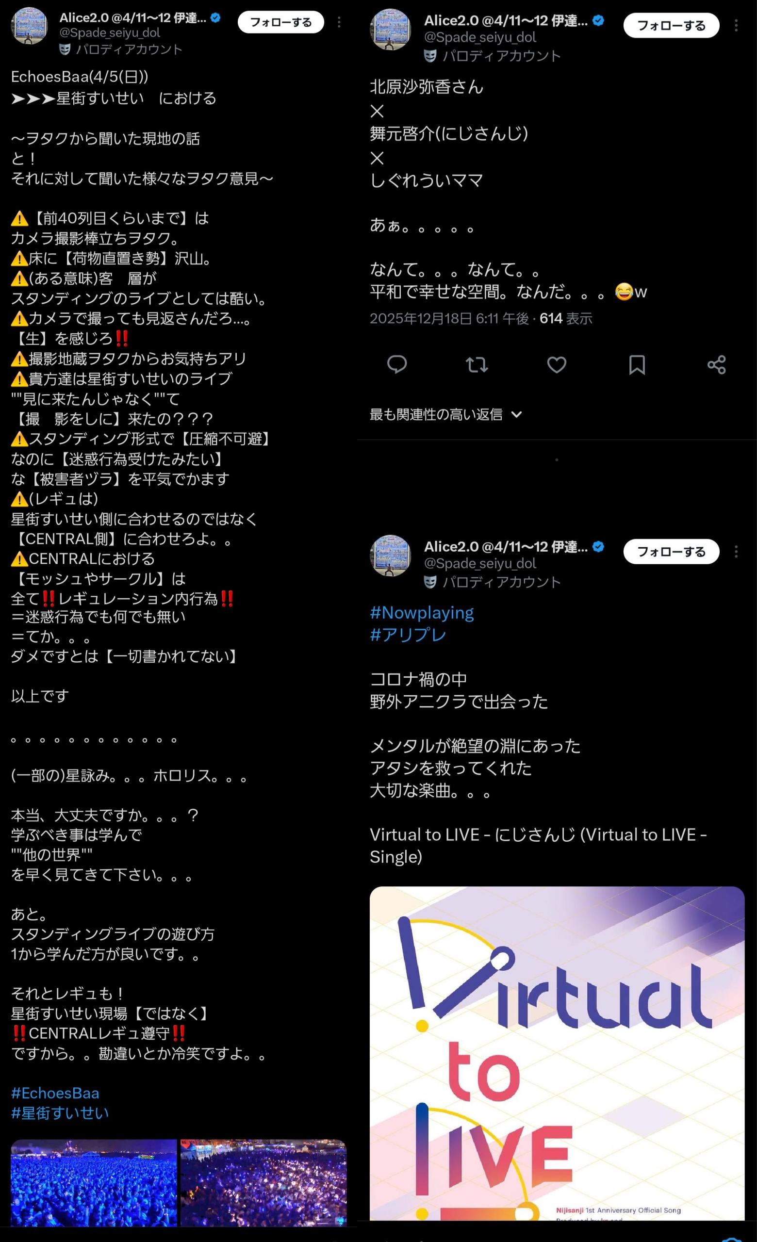 | … | 75無念Nameとしあき26/04/08(水)21:57:15No.1399507430+ホロの他に個人勢もなりすましへの注意喚起はしており情報共有もされてる |