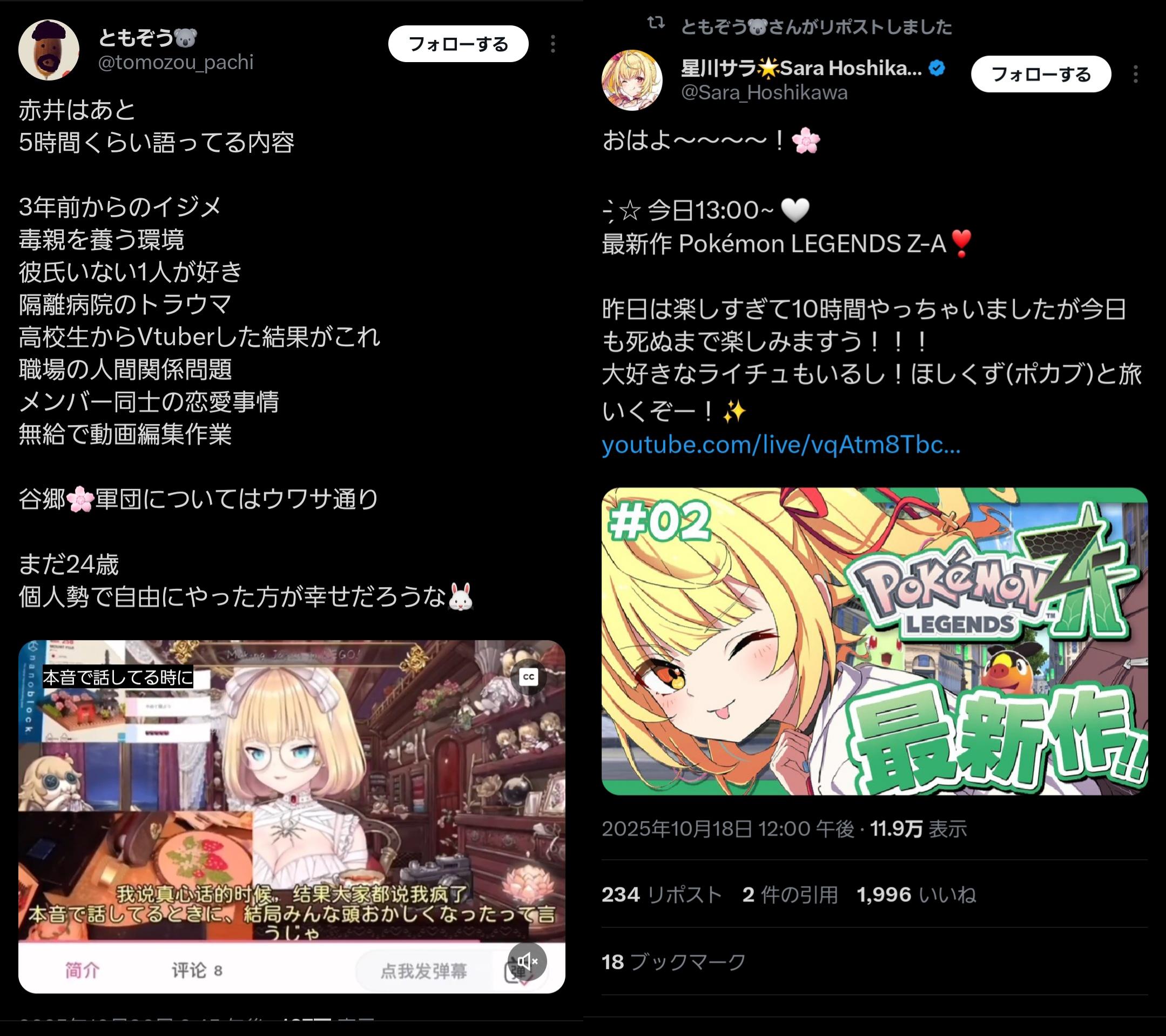 | … | 906無念Nameとしあき26/04/08(水)23:55:07No.1399535720そうだねx3 1775660107981.mp4-(6038707 B) 鳴神「俺の動画見てる奴等が普段見てるの全部にじさんじだった」 |