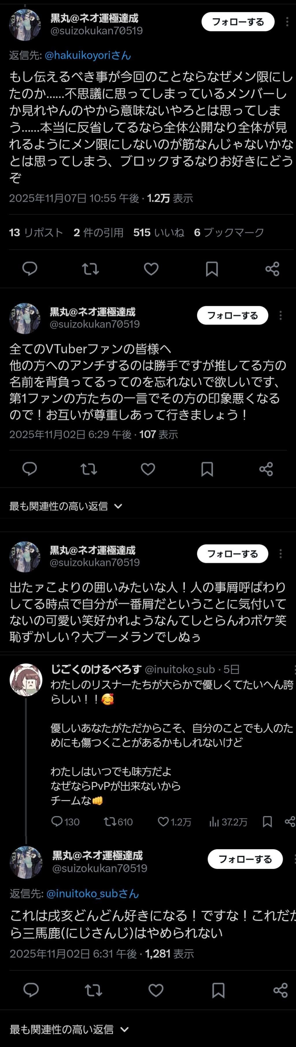 | … | 864無念Nameとしあき26/04/08(水)23:47:38No.1399534286+えにからが本気で他所を攻撃するリスナーに注意喚起したいならここに貼られてるエビデンスをダメなリスナーの例としてにじフェスに掲示したら良いんじゃないかな |