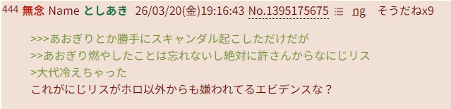 | … | 13無念Nameとしあき26/04/08(水)21:44:46No.1399504036そうだねx7>ホロメンに叱られてるのに自覚のないホロ豚 |