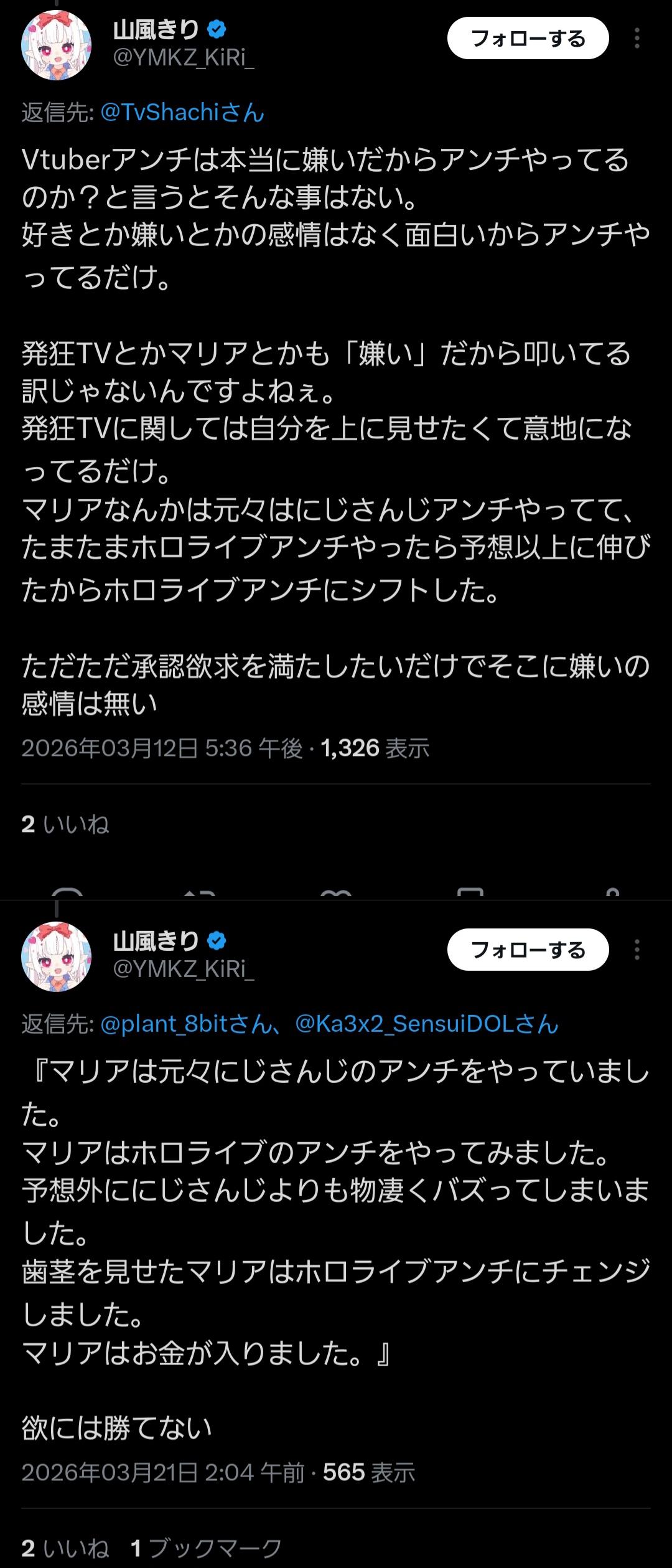 | … | 27無念Nameとしあき26/04/08(水)21:47:13No.1399504725そうだねx11擬態アンチもバレてるし |