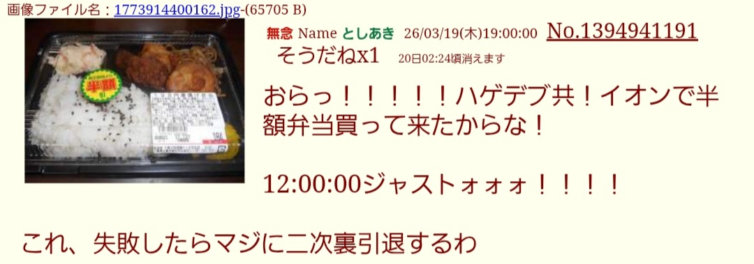 | … | 184無念Nameとしあき26/04/08(水)23:31:18No.1399531043そうだねx3>スレあきの食事画像に矛盾はない |