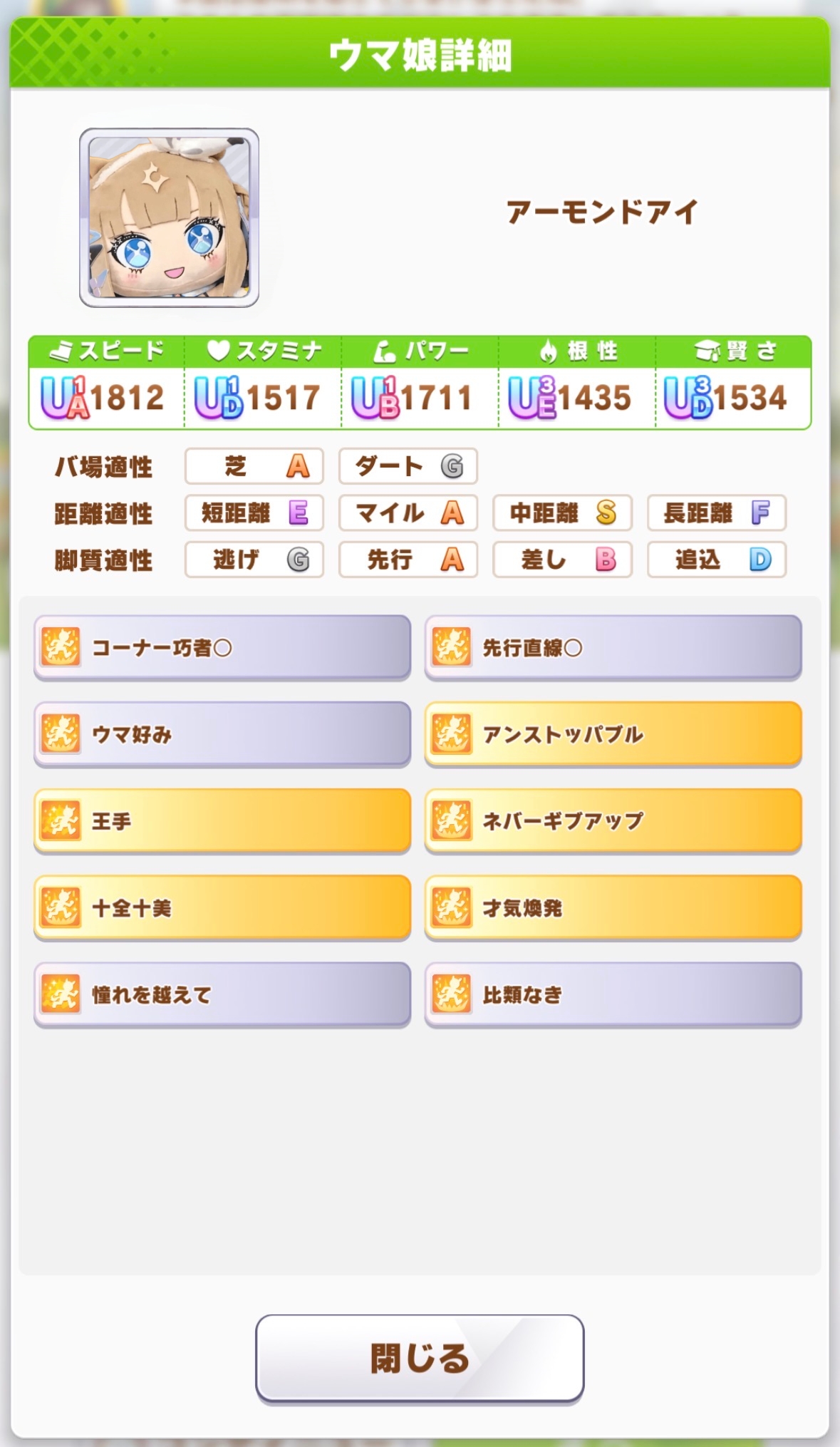 | … | 69無念Nameとしあき26/04/09(木)12:32:00No.1399603536そうだねx2 1775705520701.jpg-(40091 B) ちょっと!!なんで私よりララの方が長距離適正あるのよ!! |