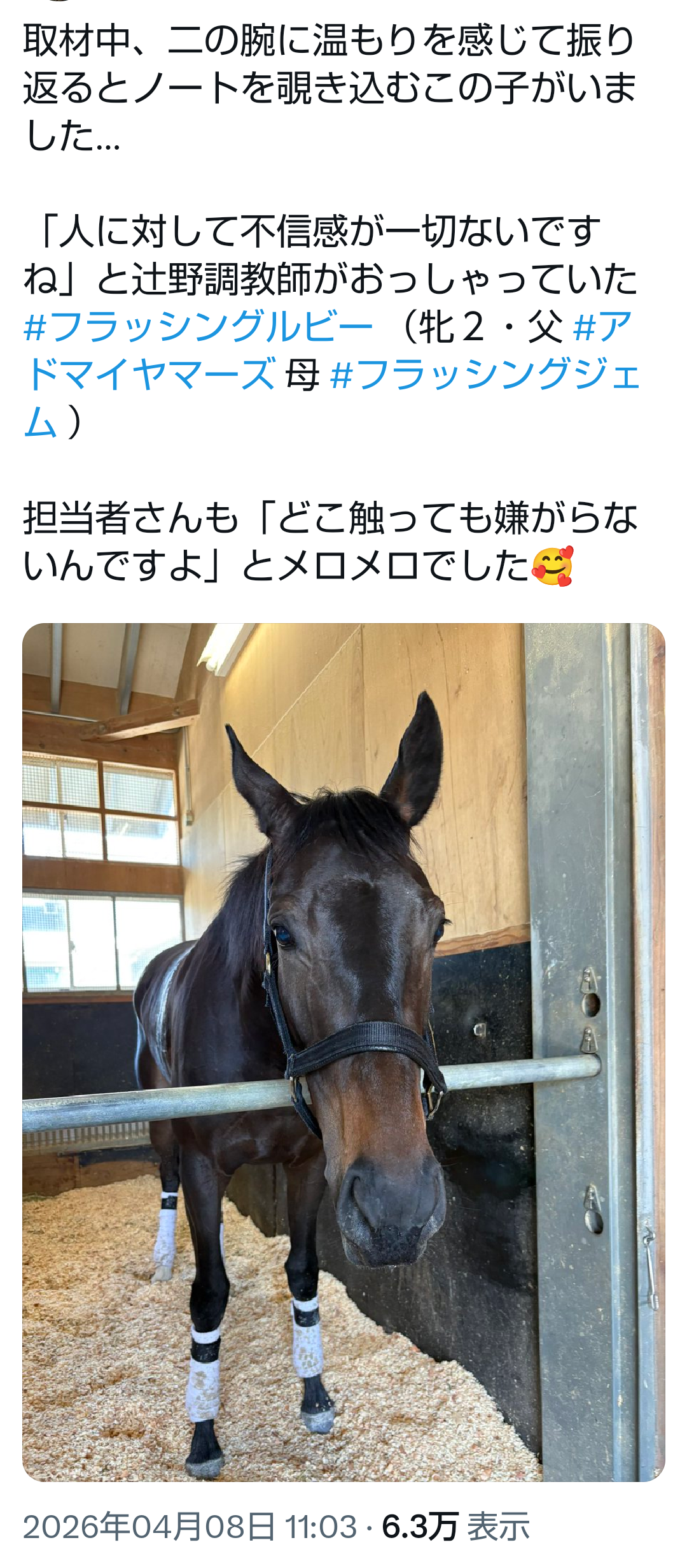 | … | 23無念Nameとしあき26/04/09(木)10:26:39No.1399584405そうだねx7今月いっぱいで騎手を引退することを決意致しました。 |