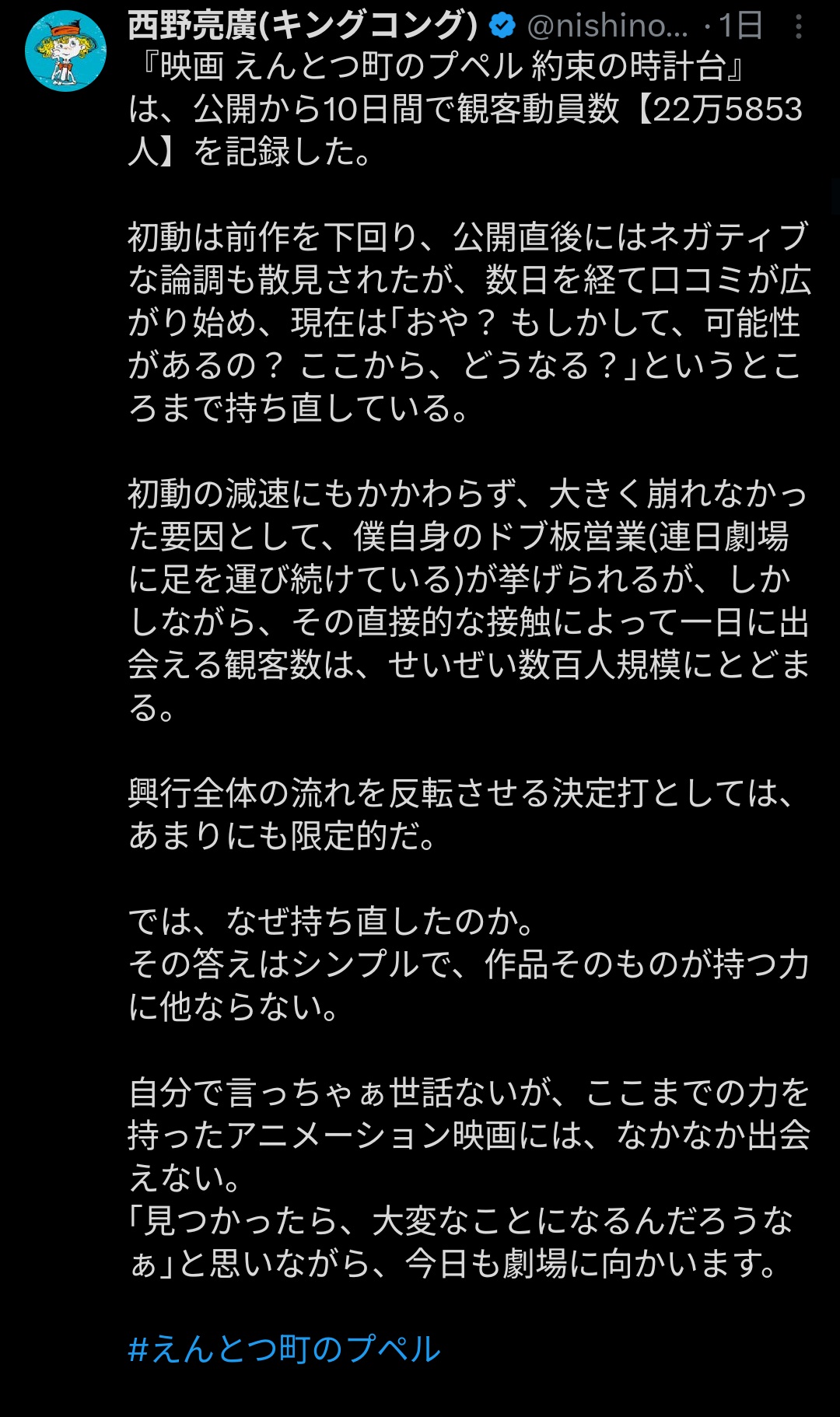 | … | 70無念Nameとしあき26/04/09(木)11:50:13No.1399595561+>*9 ***718(+**80) *33070(.277) *21.1% 80.2% **1433 映画 えんとつ町のプペル 〜… |