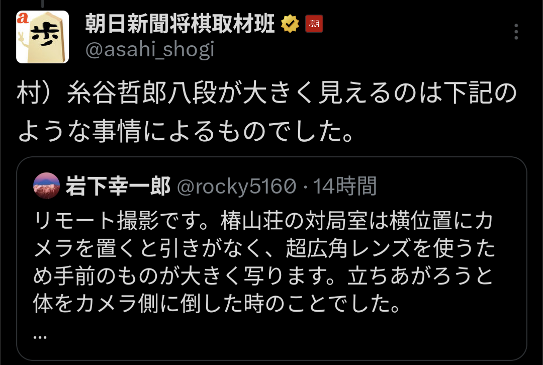 | … | 23無念Nameとしあき26/04/09(木)12:38:41No.1399604980+あれのせいで糸谷哲郎九段のイメージだったわ |