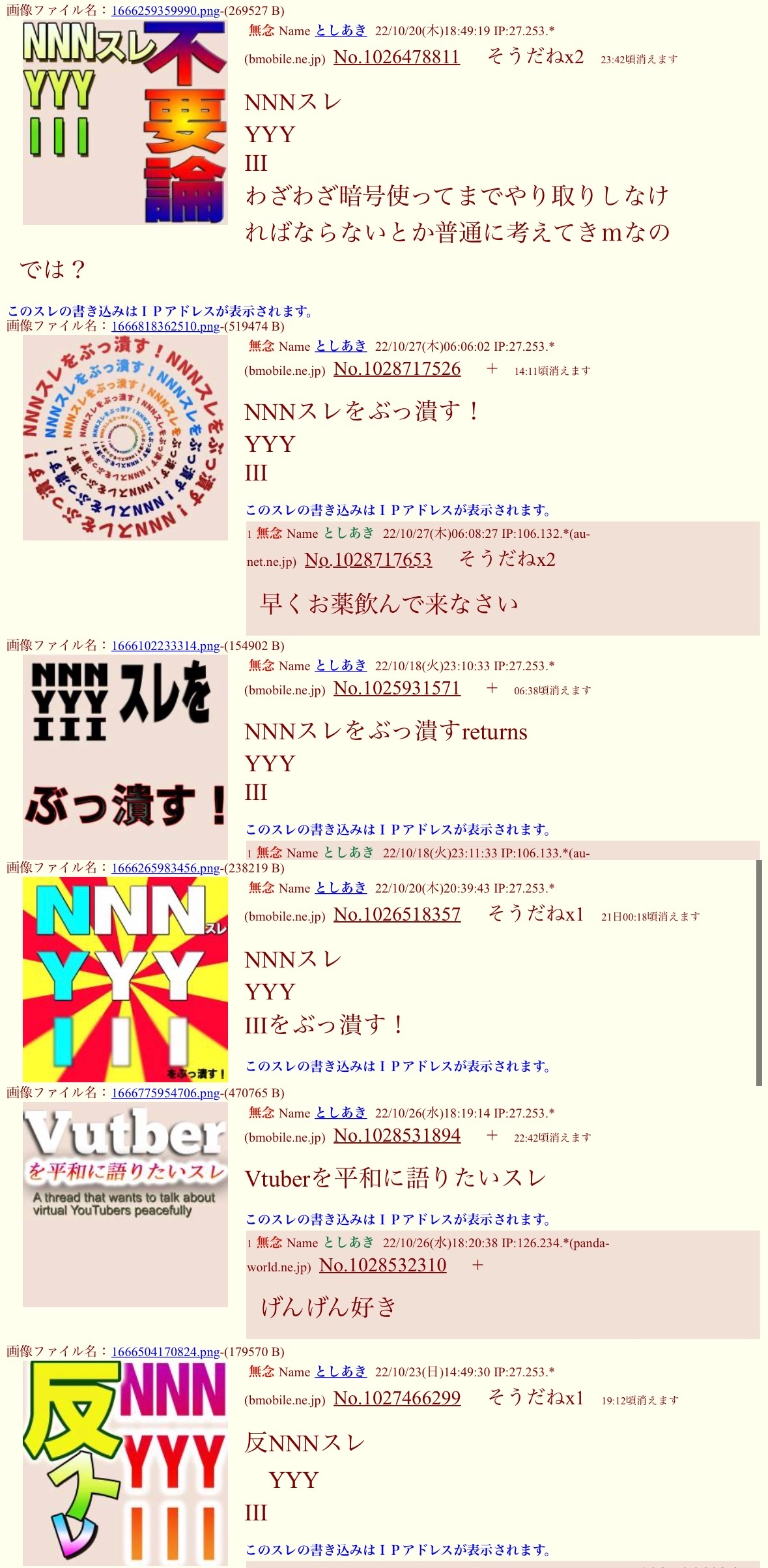 | … | 62無念Nameとしあき26/04/09(木)16:11:38 IP:162.43.*(cloud-ex.biz)No.1399636997そうだねx2NNNスレが機能してたのって3年以上は昔だよね? |