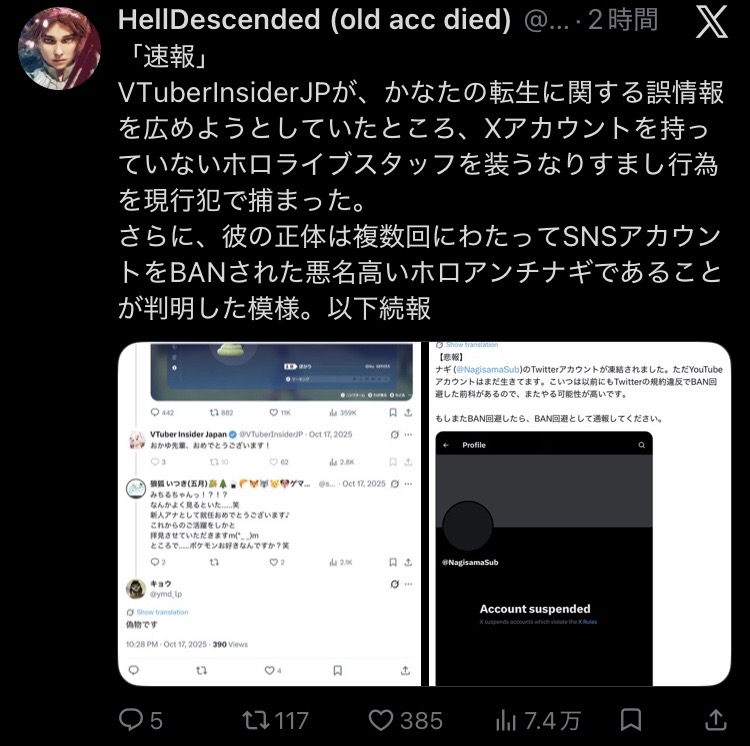| … | 123無念Nameとしあき26/04/09(木)17:07:51 IP:36.14.*(dion.ne.jp)No.1399645177そうだねx7>ちなみにこいつはにじリスのなりすましじゃなくて衛門がなりすまししてたけど |
