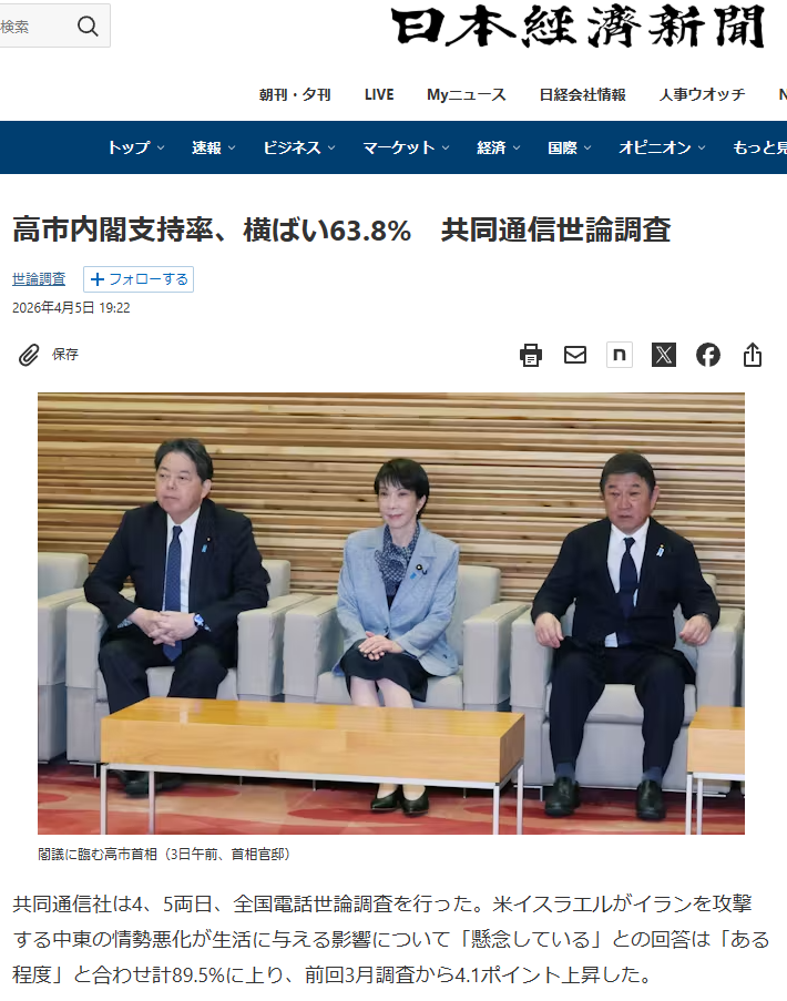 | … | 114無念Nameとしあき26/04/09(木)21:04:26No.1399700072そうだねx1・共同通信: 自民党関連は読売新聞より-5〜-10%くらい支持率が低い |