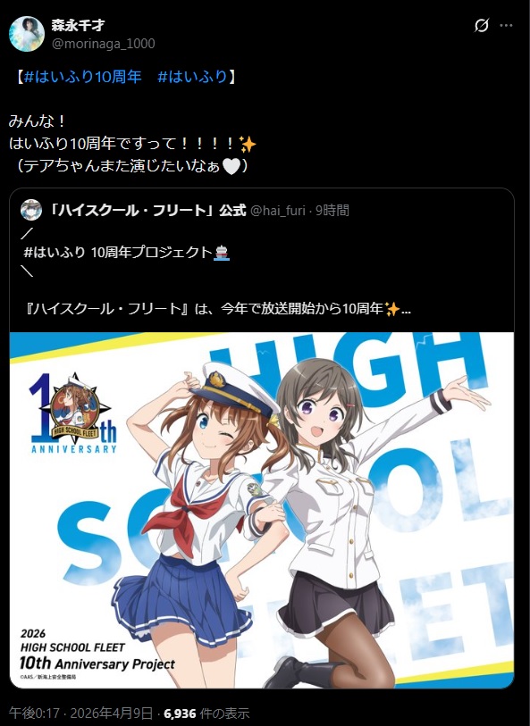 | … | 9無念Nameとしあき26/04/09(木)20:56:35No.1399697699+放送前はハイスクールフリートじゃなく |