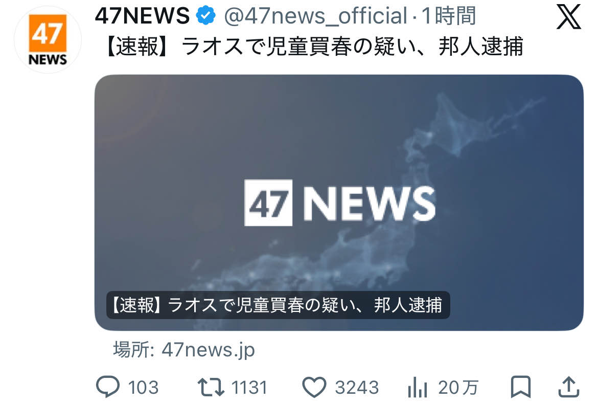| … | 20無念Nameとしあき26/04/09(木)21:41:58No.1399710866そうだねx18>外国で児童買春するようなカスはなあ |