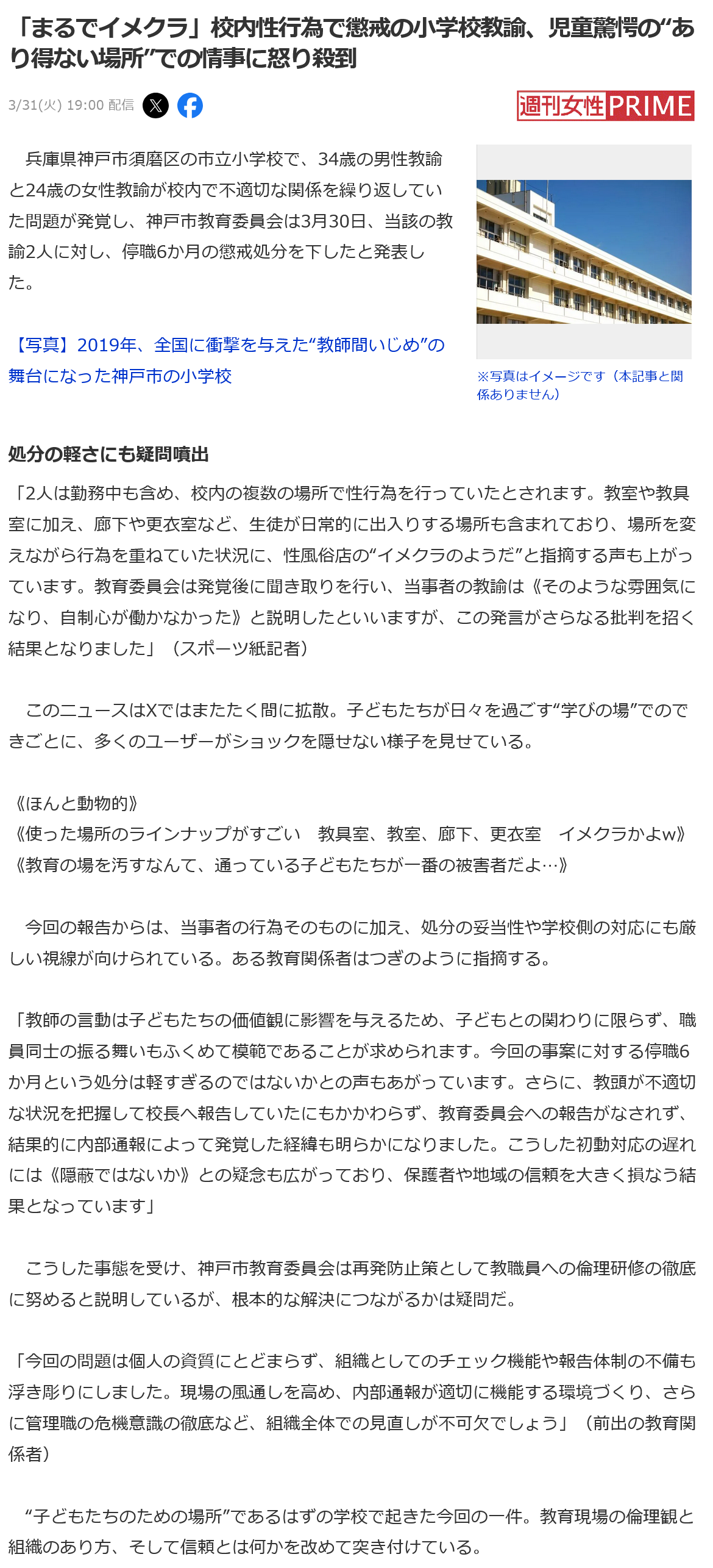 | … | 989無念Nameとしあき26/04/10(金)00:47:24No.1399750609+学校側のミスがなければ8時半くらいには連絡きて30分で消えたって余計疑われるんだから |