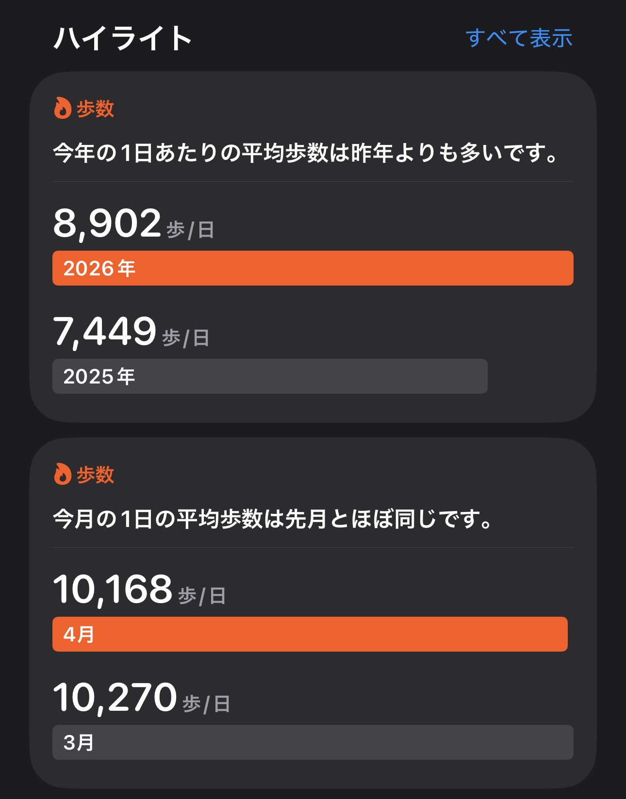 | … | 41無念Nameとしあき26/04/10(金)00:32:50No.1399748794+1万歩って有り得ないと思われがちだが7、8千歩ほどは毎日歩いてるな |