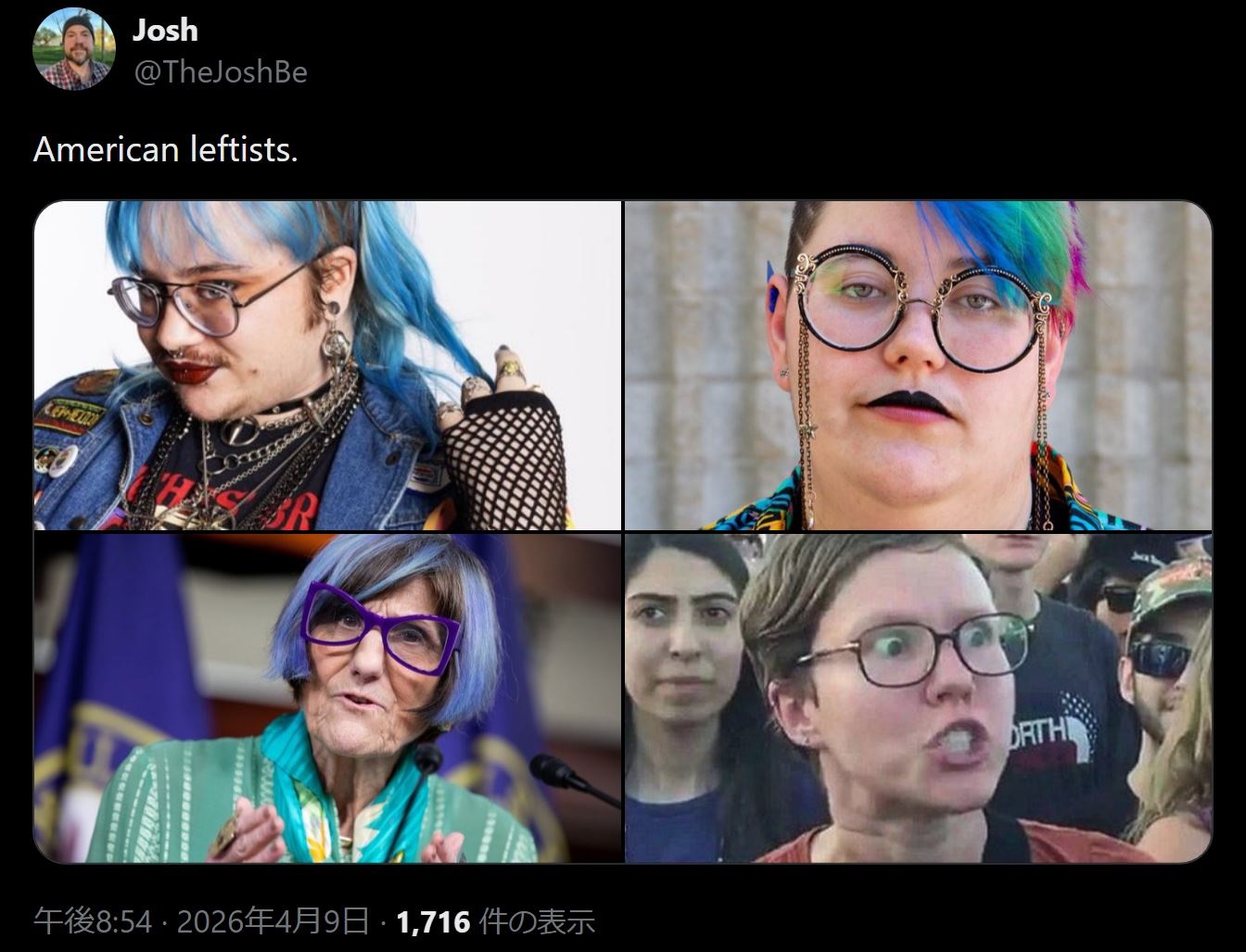| … | 399無念Nameとしあき26/04/10(金)09:14:03No.1399781101+>左翼は見た目が変っていうの世界的に同じなんだな |