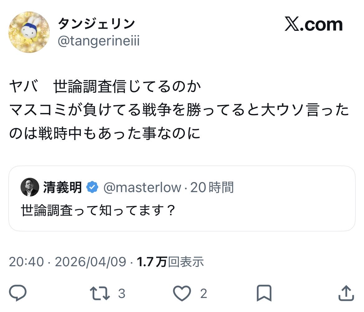 | … | 136無念Nameとしあき26/04/10(金)06:44:42No.1399768172+ 1775771082423.jpg-(92024 B) 世論調査なんて信じない |