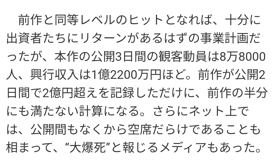 | … | 503無念Nameとしあき26/04/10(金)13:03:31No.1399813386+どっちにせよ普通の映画でいうヒットした爆死したって基準で測っても仕方ないというか |