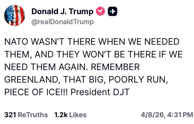 | … | 52無念Nameとしあき26/04/10(金)07:46:26No.1399772788そうだねx8 1775774786232.jpg-(249094 B) >EUがトランプと距離おきはじめたしトランプもNATO抜けると言い出してるし… |