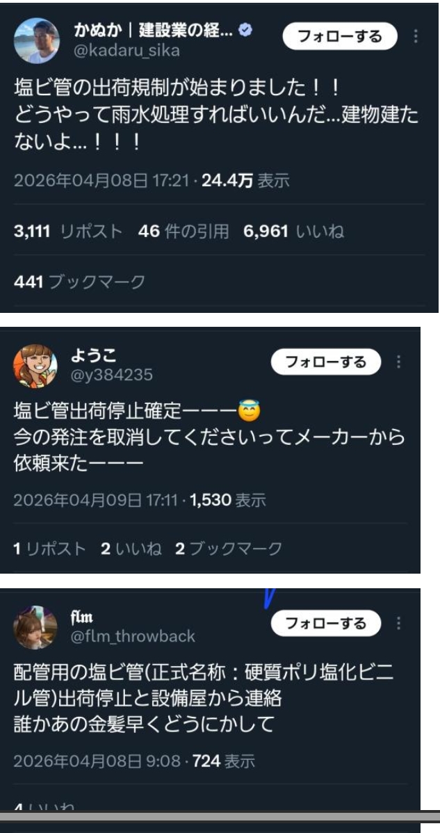 | … | 5無念Nameとしあき26/04/10(金)07:12:43No.1399770056そうだねx28日本も原油製品が品薄になってきて危機を実感してきた |