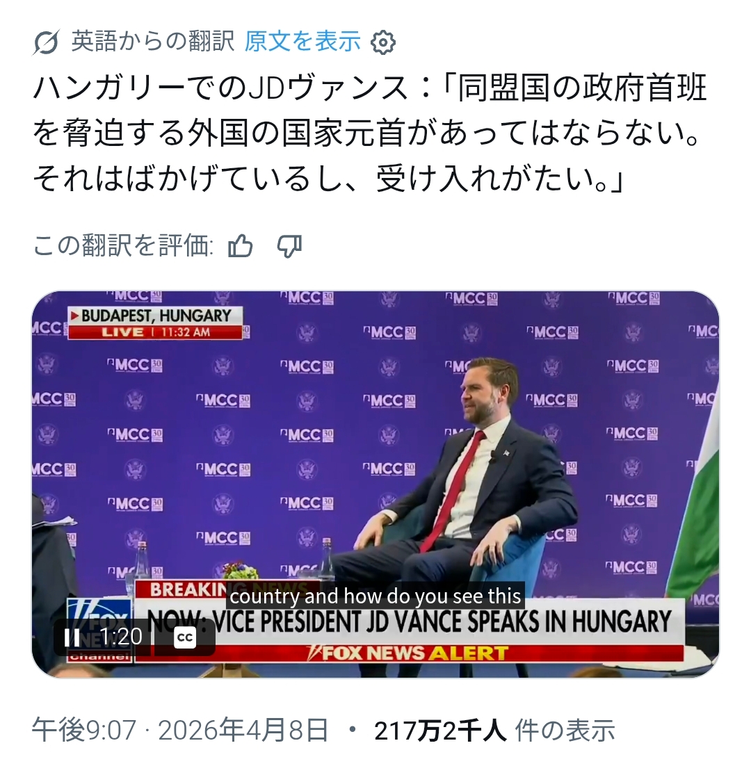 | … | 89無念Nameとしあき26/04/10(金)07:58:19No.1399773816そうだねx9>EUにあって数少ない親トランプ・親ロシアのオルバン政権も選挙で敗北濃厚だってよ |