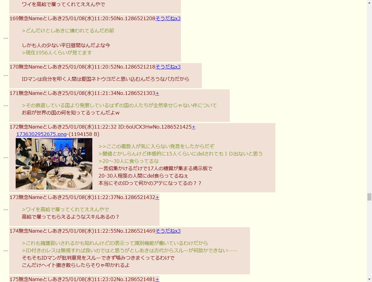 | … | 174無念Nameとしあき26/04/10(金)11:36:48No.1399797487+>荒らしが如何にも食いつきそうな写真を一時の高まったテンションで公開してしまう17人衆サイドにも問題がある |