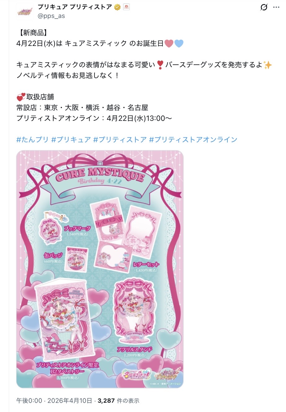 | … | 68無念Nameとしあき26/04/10(金)12:25:21No.1399805557+近年のプリキュア誕生日って記念日合わせが多いのに謎が多いんだよな小林誕生日 |